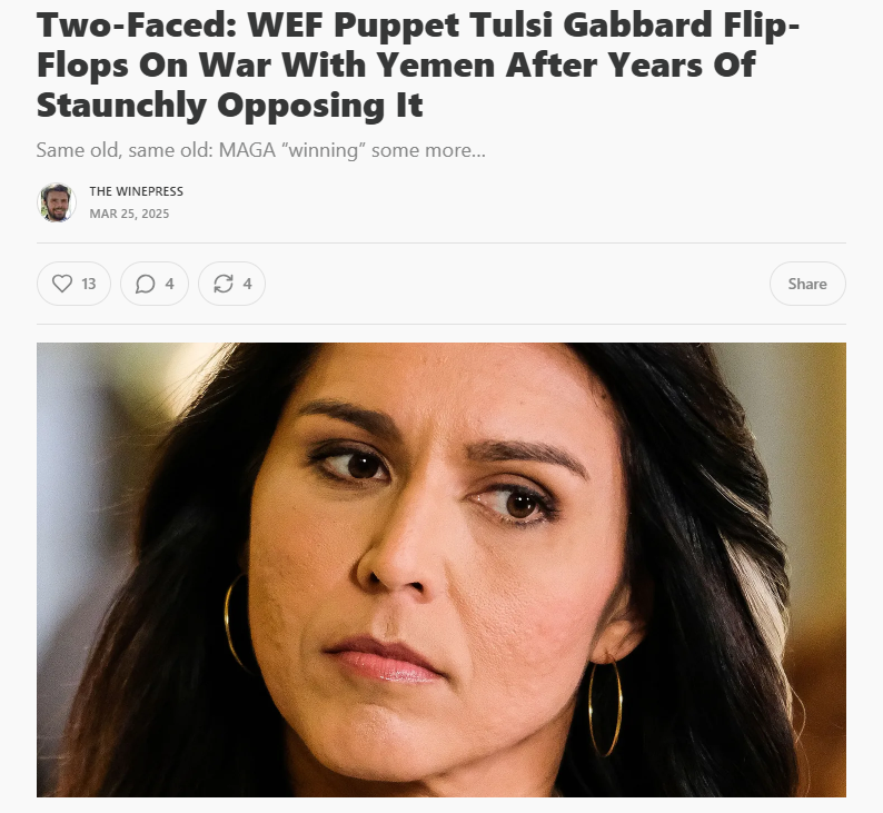 Tulsi Gabbard Flip-Flops On Yemen War After Years Of Staunchly Opposing It.
