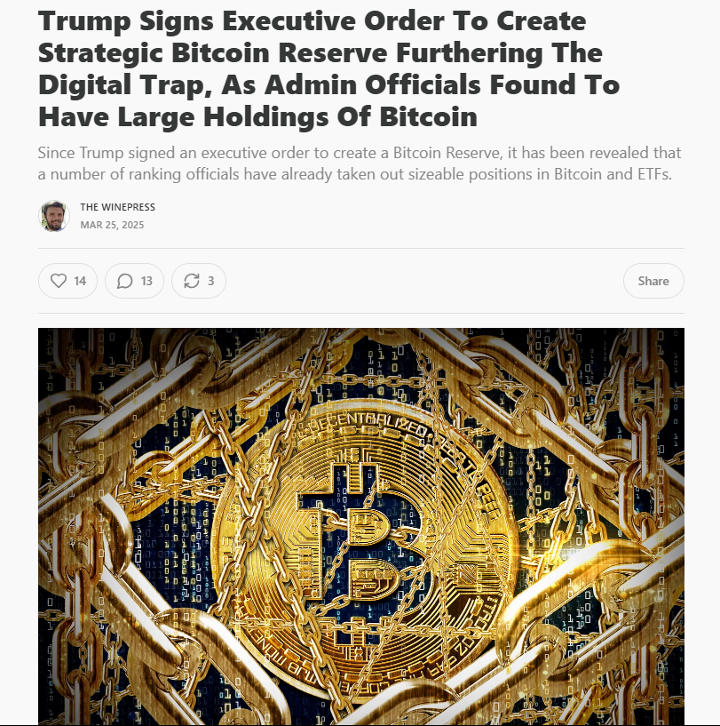 Trump Signs Executive Order To Create Strategic Bitcoin Reserve Furthering The Digital Trap