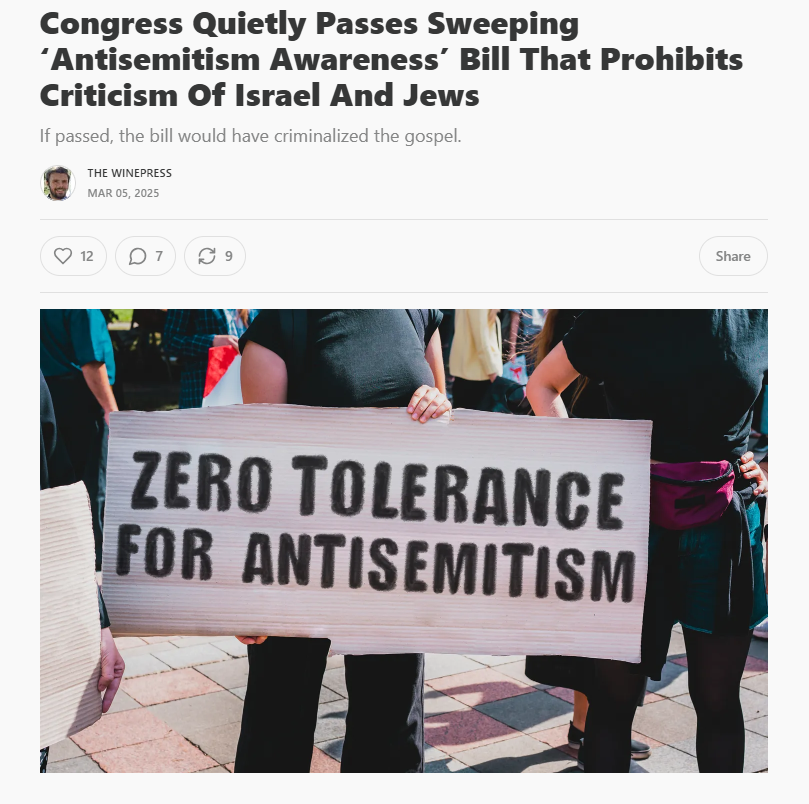 Congress quietly passes bill that prohibits criticism of Israel